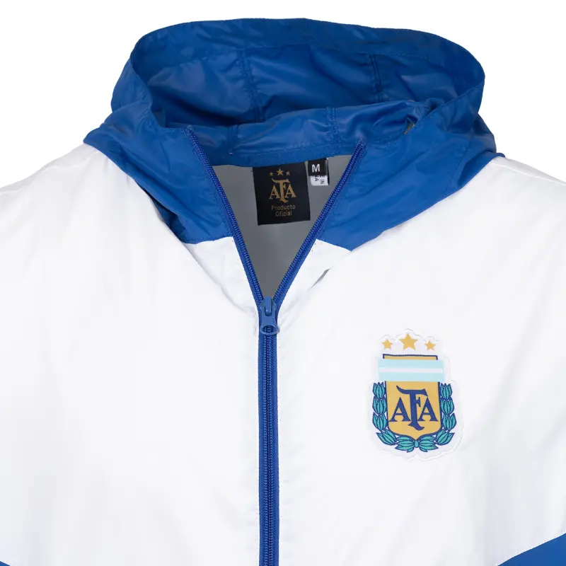 Celebrate your Argentina National Team pride with this Block Pro Full-Zip Windbreaker Jacket from Royal. This stylish windbreaker features a heat-sealed club crest on the left chest, proudly displaying your support for the Argentinian National Team. Its lightweight, 100% polyester construction makes it ideal for mild temperatures, while the adjustable hood provides full coverage from the elements should the weather take a turn.