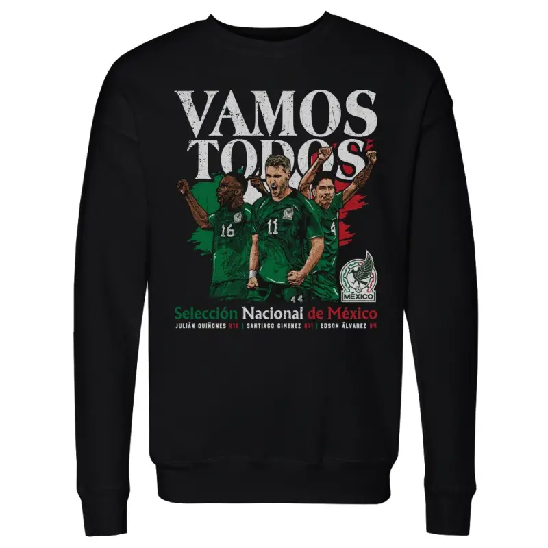 Mexico National Team 500 Level Vamos Todos Julián Quiñones Santiago Giménez & Edson Álvarez Pullover Sweatshirt – Black
